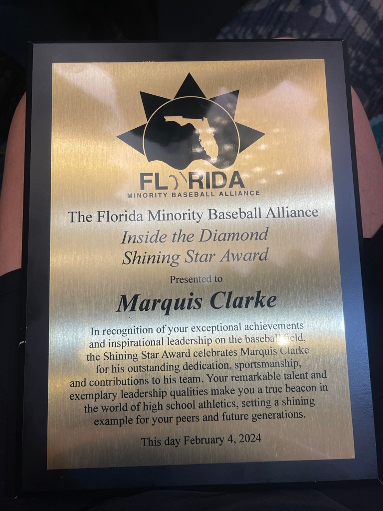 •Florida Minority Baseball Alliance – Inside the Diamond Shining Star Award (2024; baseball)