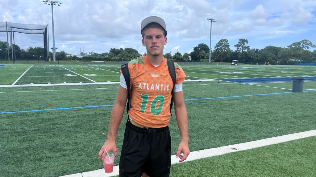 The Atlantic (Delray Beach) 2025 quarterback was in command mode throughout the playoff rounds at the Keiser 7-on-7 Tournament this past weekend (June 29). His level and style of leadership helped propel the Eagles to their first 7-on-7 tournament win in at least recent history.