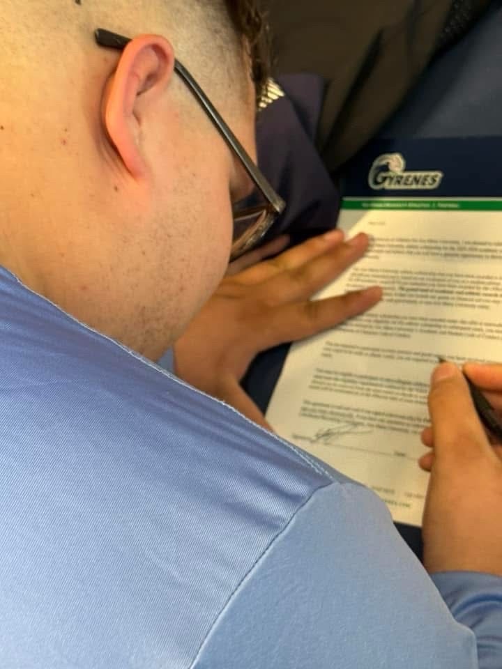 The Moore Haven 2025 offensive lineman had a life-changing experience on Saturday, Jan. 25 at Ave Maria in Southwest Florida. It resulted in his decision to happily commit and sign with the Gyrenes college football program.