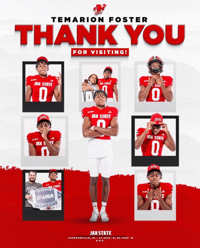 Let us congratulate and celebrate Foster as he looks to make a further impact on the college level for the next several years ahead with Jacksonville State.