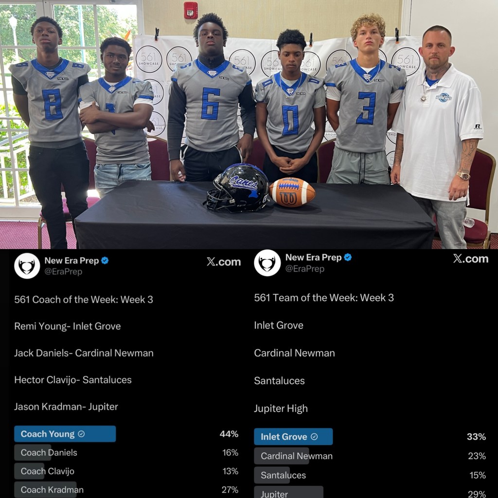 As a result of this program-defining triumph, Young was voted as New Era Prep’s 561 Coach of Week 3 and Inlet Grove was voted as New Era Prep’s Team of Week 3.
