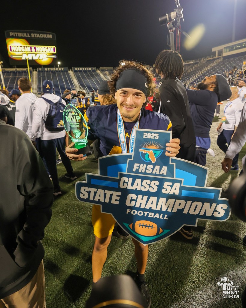 Class 5A state title game MVP and senior kicker Johnny DiSalvatore connected on five field goals and added two extra points as he led No. 1 overall seed St. Thomas Aquinas (14-1 final record) to a 29-0 win over No. 2 overall seed Lakeland (12-3 final record).